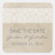 Lace russo simples e elegante Salve os adesivos de data com um papel texturizado vintage com aspecto de fundo e uma borda doce e delicada de padrão de local em branco. Fácil de personalizar, simplesmente adicione seus detalhes de casamento. Clique em "Personalizar" para encontrar mais opções de personalização.
