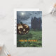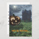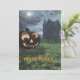 Este convite do Festa de Halloween apresenta uma obra de arte original de um sorriso Jack-O-Lanterna fora de uma casa assombrada com morcegos circulando num céu luuoso criado em Vue d'Esprit pelo artista Jayne Wilson. Linhas no verso para gravar detalhes de sua parte, endereço, data etc.