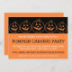 Jack O' Lantern Pumpkin Silhouette Halloween Pumpkin Carving Convite de festas (Orange / Black)... Estes convites divertidos e festivos para o Halloween são a forma perfeita de convidar amigos e família para uma festa de esculpimento de abóbora de Halloween. Totalmente personalizável...basta inserir suas informações e seus convites de Halloween estão prontos para serem enviados. O design apresenta uma série de silhuetas de abóbora de lanterna. Consulte WindyCityStationery.com para ver nossa linha completa de convites para "Jack O' Lantern Pumpkin Silhouette", além de selos, etiquetas, adesivos, cartões de nota e muito mais.