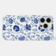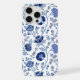 O estilo Jacobean do padrão da superfície floral design em blues contrastantes num fundo branco.