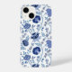 O estilo Jacobean do padrão da superfície floral design em blues contrastantes num fundo branco.