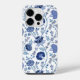 O estilo Jacobean do padrão da superfície floral design em blues contrastantes num fundo branco.