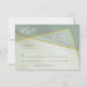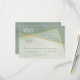 Esta simples e moderna placa RSVP de casamento em estilo geométrico apresenta um tema de cor de jade acinzentada com elementos caligráficos e sotaques de quadro dourado assimétricos e uma aparência de textura de mármore - por katz_d_zynes