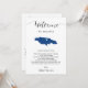 Este cartão moderno e elegante é a adição perfeita às suas bolsas de boas-vindas do hotel. Digite os eventos principais e uma nota personalizada para ajudar seus convidados a navegar no fim de semana. O tamanho permite que você insira todas as informações necessárias. Tudo neste cartão é editável. Para alterar cores ou mover elementos, clique em personalizar e, em seguida, em "editar usando a ferramenta design." Selecione o elemento que deseja editar e, em seguida, use as ferramentas para fazer as alterações.