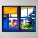 Cansado de olhar para a parede do vazio no topo da sua pia de cozinha no apartamento? Aqui está uma janela com uma vista. Vislumbre a montanha, o rio, e o centro, olhando por cima da varanda. Mídia mista.
