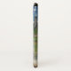 Olhando para fora de uma caverna debaixo de uma cascata em uma cena idílica em um pequeno vale de rio. Através de uma fenda na água caindo, uma cabana é visível logo além da curva do rio. A água que passa pela abertura quebra a luz do sol em muitas cores e brilhos.