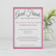 Este convite de festas de janto apresenta um elegante padrão quatrefoil rosa. O cabeçalho diz "Boa Comida, boa amiga". Este convite é personalizável. Adicione seu próprio texto e detalhes da festa!