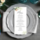 Adicione um toque de elegância do eterno à sua recepção de casamento com esta placa de menu perfeitamente projetada. Apresentando um elegante roteiro de caligrafia e layout minimalista, este menu é perfeito para mostrar seus cursos de janto com sofisticação. Adorada com flores de pêssego de aquarela e folhagem botânica verde, complementa perfeitamente primavera, verão ou casamentos outono. Seu estilo clássico, tradicional, adiciona um encanto refinado à sua sofisticada celebração de jardins, fazer-o uma escolha ideal para qualquer casal que queira criar um incrível elemento de decoração mesa que aprimora a experiência de seus convidados.