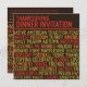 Este legal Convite para Janto de Ação de Graças apresenta apenas uma tipografia legal com muitas palavras relacionadas à Ação de Graças. Ele apresenta um pequeno ponto no verso para adicionar detalhes do convite. Muito divertido para uma legal Ação de Graças moderna.