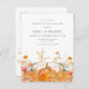 As abóboras de queda estão aninhadas em delicadas flores silvestres amarelas do ouro e laranja para criar uma estética elegante. Todo o texto é editável para que você possa facilmente artesanato seu próprio humor especial.