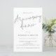 Janto de Aniversário de Casamento Elegante do Orçamento. MAIOR tamanho de 5,5" x 8,5" a um preço orçamentário, OBSERVE QUE OS ENVELOPES OPCIONAIS SÃO UM POUCO MAIORES EM TAMANHO DE 6,75" x 9", mostrados em preto e branco clássico. Este design moderno tem elegante roteiro informal para o Janto de Aniversário e o resto da tipografia que você pode personalizar facilmente. Você também pode alterar as cores do texto e do plano de fundo em ambos os lados, se desejar através da opção Personalizar mais.