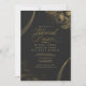 Dourados contornos de flores e folhas com sotaques geométricos criativos são emparelhados com belos textos escritos à mão e borrifados com poeira de ouro para formar as peças criativas nesta elegante suíte de casamento. Este convite de janto de ensaio de casamento apresenta os elementos de design acima e é fácil de personalizar utilizando o modelo para adicionar todos os seus detalhes de evento. Procure ID835 para ver outras peças nesta suíte.