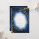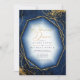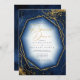 Um fundo de aquarela em tons de azul real a marinho é tocado por um abstrato de linhas de ouro finas e efeitos luminosos brilhantes para criar as peças desta bela suíte de casamento. O convite de Janto de ensaio mostrado aqui também apresenta um belo quadro de gradiente para guardar todo o seu texto. Adicione facilmente seus próprios nomes, data do casamento e detalhes do evento usando o modelo fornecido. Procure ID867 para ver outras peças e opções de cores para este conjunto.