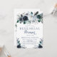 Este cartão de convite para janto de ensaio floral de Boho é perfeito para um casamento temático na moda floral. Este design apresenta belos rosas de coloração aquosa em tons de marinho e branco, com folhagem e penas sofisticadas, mas rústicas. Por favor, não hesite em contactar-me com quaisquer personalizações de design que necessite. Você encontrará itens coordenadores nas Coleções de Boho Marinho de Peony.