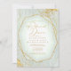 Um fundo de aquarela em tons de verde sábio é tocado por um abstrato de linhas de ouro finas e efeitos de iluminação reluzentes para criar as peças desta bela suíte de casamento. O convite de Janto de ensaio mostrado aqui também apresenta um belo quadro de gradiente para guardar todo o seu texto. Adicione facilmente seus próprios nomes, data do casamento e detalhes do evento usando o modelo fornecido. Procure ID867 para ver outras peças e opções de cores para este conjunto.