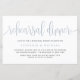 Celebre a noite antes de seu grande dia em estilo com este convite de janto de ensaio de casamento personalizável, com a frase "janto de ensaio" em uma elegante e caprichosa escrita. Projetado para casais que adoram uma mistura de charme casual e estilo eterno, este convite dá o tom perfeito para a reunião de pré-casamento. Personalize nomes, detalhes do evento, local, fontes e cores para corresponder ao seu tema de evento. Quer você esteja planejando um janto aconchegante no quintal ou uma reunião de restaurante chic, este convite para janto de ensaio ajuda você a convidar pessoas amadas com estilo e um toque de capricho.