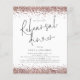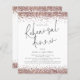 Um valor para o alternativo do ORÇAMENTO em tamanho menor de 4,5 x 5,6" de semirbrilho de 110 lbs, que é de espessura semelhante a um cartão postal (no entanto, não é adequado para uso como cartão postal). POR FAVOR, OBSERVE QUE HÁ UM convite por folha. Rosa de orçamento convite para Janto de ensaio de casamento com Glitter Dourado. Este design moderno tem elegante roteiro informal para Janto de ensaio e o resto da tipografia que você pode personalizar facilmente. O brilho de falso no rosa dourado borda o topo e o fundo em ambos os lados.