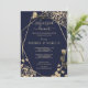 Geométrico e realismo moderno, em cores do azul-da-meia-noite, e champanhe. Rosas, cheio, longos botões do tronco e pétalas se misturam com quadros geométricos e flocos de ouro brancos. O refinamento sofisticado traz um pouco de bamboleio junto com muito romance para um janto de ensaio maravilhoso.