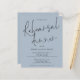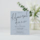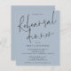 Um valor para o alternativo do ORÇAMENTO em tamanho menor de 4,5 x 5,6" de semirbrilho de 110 lbs, que é de espessura semelhante a um cartão postal (no entanto, não é adequado para uso como cartão postal). POR FAVOR, OBSERVE QUE EXISTE UM convite por folha Orçamento Janto de Ensaios de Casamento Dusty Blue Invite. Este moderno design azul empoeirado tem um elegante roteiro informal para o Janto de ensaio e o resto da tipografia que você pode personalizar facilmente. Você também pode alterar as cores do texto e do plano de fundo em ambos os lados, se desejar através da opção Personalizar mais.