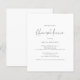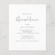 Um alternativo de 4,5 pol x 5,6 pol com preço inferior. Disponível em um STOCK DE CARTÃO SEMI-GLOSS 110 lb, que é a opção padrão (mais espesso para convites), OU um STOCK de PAPEL THINNER FINISH 80 lb FINISH (ideal para gabinetes). Os envelopes são um extra opcional e são ligeiramente maiores que o tamanho da placa. Este moderno design preto e branco tem um elegante roteiro informal para o Janto de ensaio e o resto da tipografia que você pode personalizar facilmente. Você também pode alterar as cores do texto e do plano de fundo em ambos os lados, se desejar através da opção Personalizar mais.