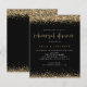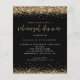 Um valor para o alternativo do ORÇAMENTO em tamanho menor de 4,5 x 5,6" de semirbrilho de 110 lbs, que é de espessura semelhante a um cartão postal (no entanto, não é adequado para uso como cartão postal). POR FAVOR, OBSERVE QUE HÁ UM convite por folha. Janto de Ensaio Dourado de Luminter Preto Convide. As bordas de confete de falso ouro elegantes estão no topo e no fundo e também no verso. O Janto de ensaio é definido num estilo moderno de escrita manual e os outros detalhes abaixo. Personalize facilmente o resto do texto para você.