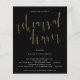 O Ensaio Elegante Janta Dourado Convite Preto. Um alternativo MENOR de 4,5" x 5,6", compatível com o orçamento. Disponível em um STOCK de PLACA SEMI GLOSS 110 lb ou um STOCK de PAPEL THINNER SATIN FINISH 80 lb. Os envelopes são um extra opcional. O Janto de ensaio está em uma caligrafia de na moda set em ouro e o resto do texto que você pode personalizar facilmente. Você também pode alterar as cores de fundo do texto e preto e dourado em ambos os lados, se desejar por meio da opção Personalizar Mais.
