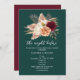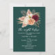 Celebre a noite anterior com este elegante convite de janto de ensaio, com um rico fundo verde esmeralda e buquê floral romântico em burgundy, blush e pêssego. O script "The Night Before" adiciona um toque na moda, íntimo, enquanto as fontes clássicas de serif fornecem detalhes fáceis de ler do evento. Perfeito para casamentos outono, temas de joias modernas e jantadas de ensaio rústico-quic. Combina com a suíte de casamento Floral Rustic Emerald & Burgundy para coordenação perfeita.