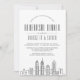 Um convite de janto de ensaio único para um casamento que está a decorrer na bela cidade de Filadélfia, Pensilvânia. Este convite apresenta uma ilustração estilizada do horizonte único da cidade. A isto seguem-se as informações do janto de ensaio num estilo aberto correspondente. No verso do convite está uma profunda cor de cinza de carvão para complementar a aparência e o sentimento. Além disso, há um ponto no verso para você adicionar informações de RSVP para seus convidados. Todos os elementos individuais do cartão de convite estão desbloqueados, portanto, sintam-se livres para alterar ou adicionar os detalhes necessários usando a função de personalização. Divirta-se sendo criativo e fazer seu!