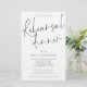 Um tamanho maior de 5,5" x 8,5" a um preço orçamentário. Mostrado em preto clássico e branco. Este design moderno tem elegante roteiro informal para Janto de ensaio e o resto da tipografia que você pode personalizar facilmente. Você também pode alterar as cores do texto e do plano de fundo em ambos os lados, se desejar através da opção Personalizar mais.