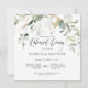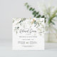 Design apresenta a redação Jante de ensaio em um roteiro de caligrafia moderno cercado por eucalipto verde acentuado em ouro. Personalize facilmente com informações importantes escolhidas na frente e monograma de suas iniciais no verso.