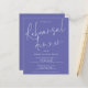 Um valor para o alternativo do ORÇAMENTO em tamanho menor de 4,5 x 5,6" de semirbrilho de 110 lbs, que é de espessura semelhante a um cartão postal (no entanto, não é adequado para uso como cartão postal). POR FAVOR, OBSERVE QUE HÁ UM convite por folha. Janto de ensaio de casamento Blue Invite. Este moderno design de violeta azul-piscadela tem um elegante roteiro informal para o Janto de ensaio e o resto da tipografia que você pode personalizar facilmente. Você também pode alterar as cores do texto e do plano de fundo em ambos os lados, se desejar através da opção Personalizar mais.