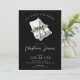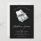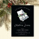 O nosso convite para o janto de Natal apresenta um cenário elegante de janto de férias e verde holly com o ditado "comer, beber e ser feliz" O convite é simples e elegante, com um fundo preto e um texto branco.