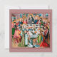 Pintado em 1503 por um artista anônimo do Oriente Médio, este painel retrata o janto mencionado em John 12:1-3 que ocorreu em Bethany após a criação de Lázaro e pouco antes de Jesus chegar a Jerusalém no Domingo de Palma. Como tal, o humor é comemorativo — mais alegre e menos sombrio que o da Última Ceia que aconteceu na quinta-feira seguinte (quinta-feira de manhã). É o painel central da altarta trítica que agarra o altar de Martha do coro sul da Igreja de Nossa Senhora (Liebfrauenkirche) em Oberwesel, Renânia-Palatinado, Alemanha. Aqui, Jesus e Seus Doze Apóstolos estão sentados em uma mesa redonda, presumivelmente uma de várias na sala desde que o Evangelho alude à presença de mais participantes, incluindo Lázaro. A mesa é vista até o momento, melhor para ver os artigos de mesa e os alimentos. Os Apóstolos conversam entre si. Uma (Rua. Bartholomew?) fatia pão. No centro de primeiro plano, Ruas. Martha, vestindo um avental e carregando um prato de peixe, serve (como Ruas. John o coloca de forma sucinta). Enquanto isso, Rua. Mary, erradamente identificada na época em que a peça foi pintada com a penitente Magdalene e uma mulher pecaminosa e anônima, ajoelha-se em frente. Ambas as mulheres vestem vestidos de materiais magníficos. Entre eles, ajoelha-se o doador, o Cânon Peter Luteran, que está representado numa escala muito reduzida. A cena lotada brilha com energia e o barulho implícito de conversas animadas e de chocantes loucos. + Veja também a Rua. Itens da Martha — aventais, luvas de forno, suportes de potharia e bandejas de serviço — da nossa série de Santos Apron (q.v.) para misturar e combinar! + Image Credit (M 055): Foto de Rolf Kranz de uma pintura de dominio público que tem mais de 100 anos da WikiMedia Commons (Por Rolf Kranz - Trabalho próprio, CC BY-SA 4.0, https://commons.wikimedia.org/w/index.php?curid=106002864). A foto foi cortada firmemente em um retângulo sem bordas.
