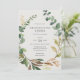 Este design apresenta tons de fazenda neutros com uma coroa botânica de eucalipto.
