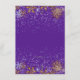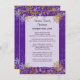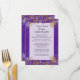 Modelo de menu de Natal roxo com cristais de ouro e flocos de neve brancos. Personalize facilmente com o nome da família, data e lista de aperitivos, bebidas, entrenes e sobremesas. Para criar uma saquê familiar divertida, inclua o nome do padeiro/chef próximo a cada comida, se você quiser. Escolha qualquer tamanho, mas ele será impressão como você vê.