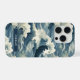 Make a statement with this iphone 15 pro phone case that features rolling Japanese waves in multiple shades of teal blue. The pattern represents surges of good luck, peace, and eternal resilience. It becomes uniquely yours with your name in a CAP font in white on dark teal.