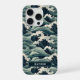 Make a statement with this iphone 15 pro phone case that features rolling Japanese waves in multiple shades of teal blue. It's modern yet traditional. The pattern represents surges of good luck, peace, and eternal resilience. It becomes uniquely yours with your name in a CAP font in white on dark teal.