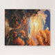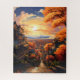 Esta quebra-cabeça apresenta uma ilustração vibrante de uma passagem de pedra em uma cidade japonesa no outono. As laranjeiras brilhantes e as árvores de madeira alinham a passarela, que se desprende de uma colina íngreme. À distância está o sol pendurado no céu sobre uma cordilheira de cinzas azuis.
