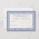 Um padrão tradicional de onda seigaiha japonês com texto totalmente editável. Perfeito para praia/casamentos náuticos. O padrão é muito ligeiramente irregular e tem textura texturizada/marcada d'água para impedi-lo de parecer plano demais. O verso do cartão tem uma imagem circular opcional que contém um título 'RSVP', os nomes das noivas e dos grupos e a data do casamento. O círculo e o texto podem ser editados ou completamente excluídos.