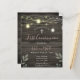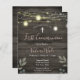Tipografia de script rosa. Fundo de textura falsa de madeira, luzes de jarro, design de campo rústico. Primeiros convites orçamentais para comemoração da Comunidade. Você pode adicionar fotos à parte traseira ou texto adicional, se necessário.