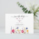 Este vibrante e encantador cartão de casamento "save-the-date" é uma celebração do amor, misturando o charme boêmio com a beleza de um jardim colorido. A cativante ilustração em aquarela apresenta uma profusão de flores silvestres em tons de rosa quente, amarelo ensolarado, azul refrescante e lavanda delicado, criando uma atmosfera animada e romântica. Para personalizar ainda mais, clique no link "personalizar ainda mais" e utilize nossa ferramenta de design para ajustar este modelo de acordo com suas preferências.