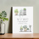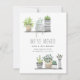 Compartilhe seu novo endereço com anúncios móveis de aquarela doce, com duas prateleiras de plantas cercadas e verde. Personalize com seu anúncio personalizado (mostrado com "movemos"), seus nomes e informações de alteração de endereço.
