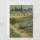 Jardim de Arles por Vincent Van Gogh, óleo na canvas 1888, é uma pintura paisagística de um pequeno rastro de canteiros de flores sob um céu ensolarado, com árvores frutas, arbustos, ciprestes e prédios rurais franceses ao fundo. Com variadas pinceladas que transmitem a forma, o crescimento e o movimento das formas paisagísticas, aplicadas diretamente à canvas nua em dabs de cor pura, Van Gogh constrói uma composição viva que captura a vida interna de seu humor floral. Aqui, o artista ultrapassou as lições de Impressionismo que absorveu em Paris e as marcas de seu estilo maduro que desenvolveu no sul da França. Vincent Van Gogh (1853 - 1890) foi pintor holandês do movimento Poste-impressionista conhecido por desenho ousado, expressivo, pinceladas giratórias e cores intensas e altas. No início da idade adulta, Van Gogh trabalhou como negociante de arte, professor e pastor antes de iniciar o estudo de cheio de desenho e pintura nos seus vinte e poucos anos. Influenciado por Rembrandt, a escola realista do século XIX e de Barbizon, as pinturas iniciais de Van Gogh incluíam estudos de trabalhadores e camponeses em tons de terra sombria. Mudando para a França em 1886, Van Gogh encontrou-se com as surpreendentes inovações dos pintores impressionistas e começou a aplicar sua abordagem à cor e à matéria, que continuava no estilo maduro pelo qual o artista é mais conhecido. Van Gogh produziu muitas centenas de desenhos e pinturas, incluindo retratos, paisagens, pinturas de vida e flores, e numerosos autorretratos que se tornaram uma influência dominante na arte moderna do século 20 e o tornaram um dos artistas mais populares de todos os tempos.