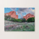 Quebra-cabeça de Jigsen com uma vista das Rochas do Gateway Norte e do Gateway do Sul no Jardim dos Deuses do Colorado Primaveras, Colorado, Estados Unidos. Foi uma manhã de verão no parque incrivelmente cedo e você pode ver que a lua ainda estava lá fora. Procurando mais produtos? Visite minha loja: http://www.zazzle.com/timelessmomentsphtgy Foto tirada por Jennifer White com Fotografia Moments Eterno. Todas as imagens são protegidas por direitos autorais.