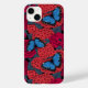 Padrão sem costura com borboleta azul-morfo desenhada à mão, hydrangea e peônias.
