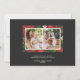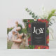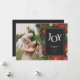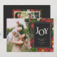 O cartão com fotos elegante apresenta a sua imagem vertical ou orientada para retratos favorita à esquerda. "JOY" aparece à direita, junto com seus nomes familiares e ano, em um fundo botânico vermelho e verde de inverno que incorpora flores vermelhas de poinsettia, folhagem verde e minúsculas flores brancas em um rico fundo de cinzas escuras. Personalize as costas com duas fotos adicionais e uma mensagem de Natal pessoal, se desejado, acentuadas com um padrão correspondente.