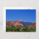 Eu tomei esta imagem do jardim dos deuses apenas dois dias antes que o fogo da garganta de Waldo começou em Colorado Springs, Colorado em junho de 2012. Os céus eram azul calmo, claro e cerulean. O contraste do vermelho balança contra as plantas verdes, cobertas fora com o céu azul e os piques repicam no fundo criam uma imagem impressionante. A flora e a fauna naturais da paisagem criam uma foto impressionante com cor vibrante contudo natural. Se você gosta desta imagem, olhe outros produtos em minha loja de Pictimilitude com esta mesma imagem. Emparelhe este cartão com os selos e os envelopes de harmonização.