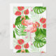 Design de padrão aquoso com flores e aves flamingos, monstera e palmeiras.