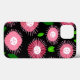 Essa capa de telefone tem um design de flores minimalistas inspirado na escandinávia em tons retrorados de rosa e preto.