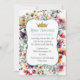 convite de aniversário de Quinceanera bonito com flores de jardim coloridas de água para um fundo. Uma área de texto decorativo, sobre as flores, tem uma coroa de ouro no topo. Personalize o texto para o dia especial da sua filha.